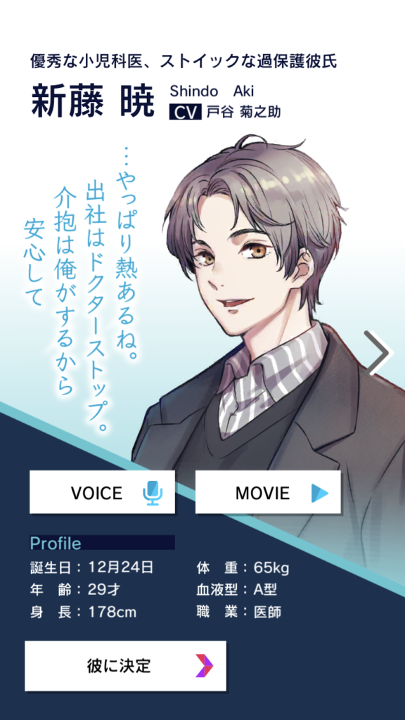 彼氏の紹介ムービーが再生された後、ユーザーはどちらかの彼氏を選択※します。