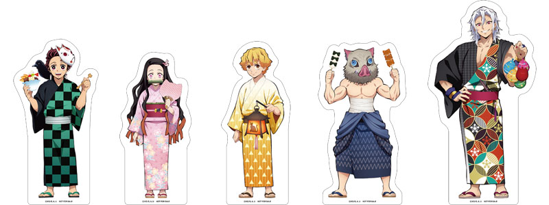 本催事では“お祭り”をテーマに、和装を着用した竈門炭治郎(かまど たんじろう)・竈門禰豆子(かまど ねずこ)・我妻善逸(あがつま ぜんいつ)・嘴平伊之助(はしびら いのすけ)・宇髄天元(うずい てんげん)のufotable描きおろしの等身イラストが登場。3つの会場では、夜の長屋がお祭りで華やぐ様子をイメージしたコラボエリアに、提灯で飾られた櫓(やぐら)やお祭り屋台風のミニゲーム屋台が並び、もれなくオリジナル景品がもらえる5つのミニゲームと回遊型ラリーゲームがお楽しみいただけます。描きおろしイラストを使用したオリジナルグッズやお祭り気分がさらに盛り上がるオリジナルデザート&フードも販売します。
