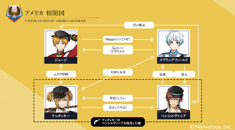 ◎ロードストーリーPV「アメリカ編」に登場するアメリカグループの相関図をご紹介♪