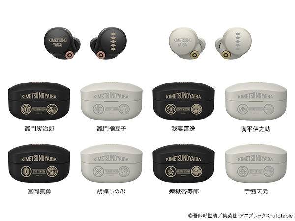 なお、ソニーの直営店「ソニーストア 銀座・札幌・名古屋・大阪・福岡天神」では2月25日(金)より数量限定にて販売開始いたします。店頭販売内容は、新商品のヘッドホンWF-C500「宇髄天元」ブラック 各店5台、ワイヤレススピーカー SRS-XB13「宇髄天元」ライトブルー 各店5台。注文受付中のウォークマン® NW-A55 「竈門炭治郎」グレイッシュブラック 各店5台、「煉獄杏寿郎」トワイライトレッド 各店5台、ヘッドホン WF-1000XM4「竈門炭治郎」ブラック 各店5台、「煉獄杏寿郎」ブラック 各店5台。2月17日(木)以降、店頭にてサンプルもご覧いただけます(全キャラクター分)。