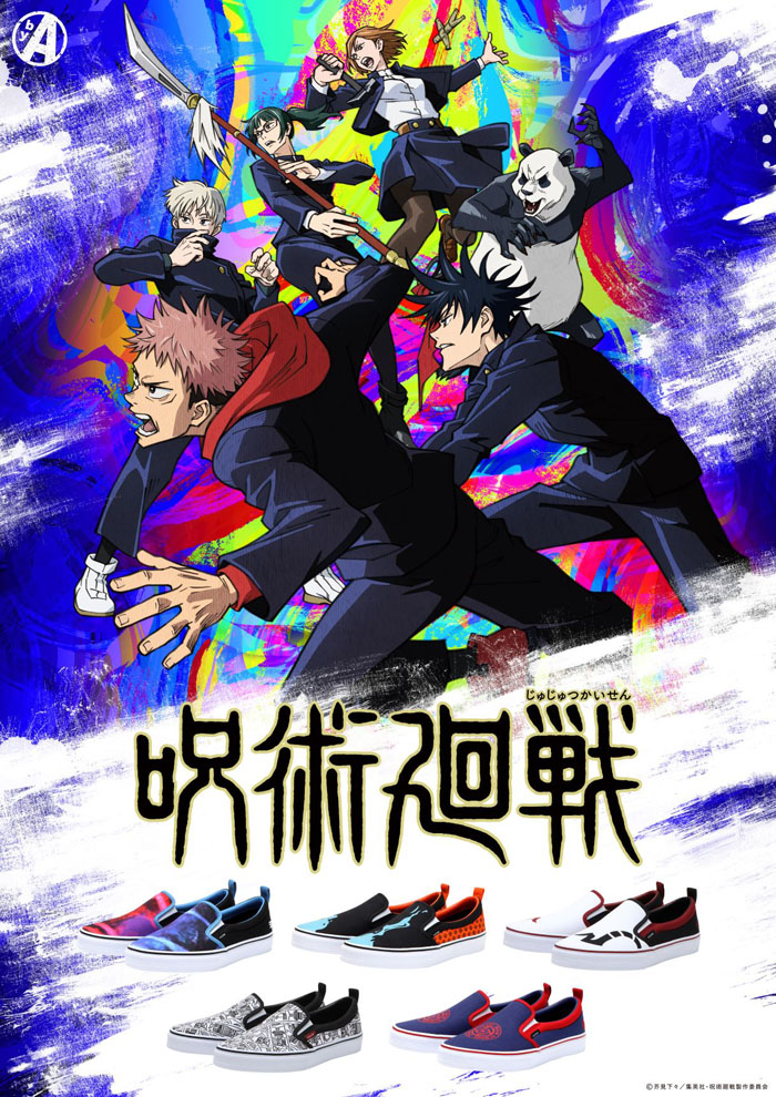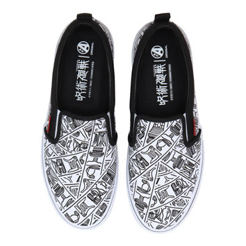 本コラボシューズは、人間の負の感情から生まれる呪霊を呪術を使って祓う呪術師の闘いを描いたTVアニメ『呪術廻戦』の人気キャラクターや世界観をモチーフにデザインしたスリッポンです。