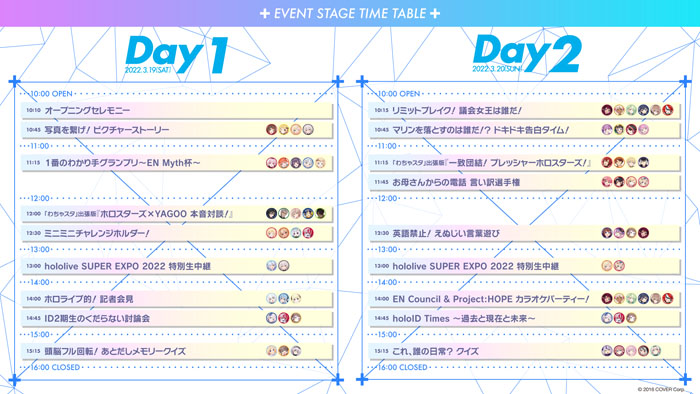 「hololive SUPER EXPO 2022」イベントステージ タイムテーブル