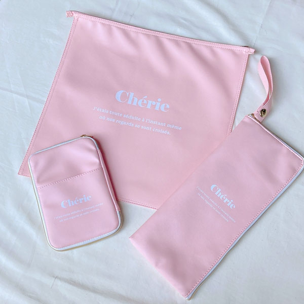 新たに登場する推し活グッズは、「うちわケース」「アクスタポーチ」「ペンライトポーチ」の3種類。それぞれにパステルピンクとパステルベージュのカラーが用意され、デザインもフレンチガーリーな雰囲気に仕上がっている。価格はもちろんすべて390円(税込429円)だ。
