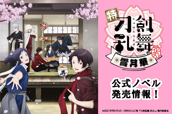 劇場アニメ「特『刀剣乱舞-花丸-』~雪月華~」の公式ノベルが2022年10月より順次発売されることが決定した。執筆は脚本を手掛ける猫田幸氏が自らが担当、各巻のカバーイラストは動画工房による描き下ろしとなる。