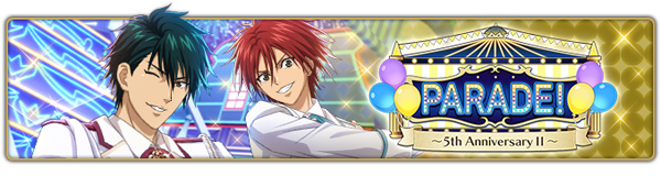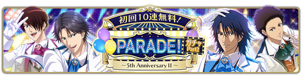 詳細はテニラビゲーム内お知らせ『イベント「PARADE! 〜5th AnniversaryⅡ〜」開催!』をご確認ください。