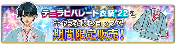 5周年を記念して、「テニラビパレード衣装’(キャラ衣装)」をキャラ衣装ショップで期間限定販売!